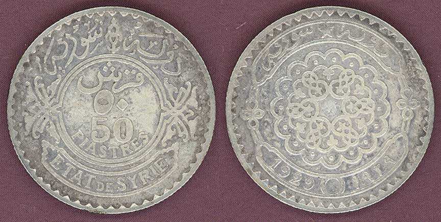 Item Number: SYRIA-27 Very Fine - 50 Piastres .680 Fine Silver KM#74 Star within flower design.$35.00