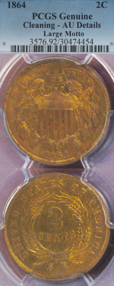 Item Number: TC-52 PCGS Genuine - Almost Uncirculated Details- Cleaning - High grade AU that may have been lightly cleaned long ago. Large Motto Mintage of 19,847,500 All varieties$95.00