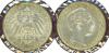 1907-A 5 Mark Very Fine - 5 Marks .900 Silver #523 Berlin Mint Ruler: Wilhelm II Large silver dollar size 5 mark. |