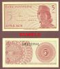 1964 5 Sen Crisp Uncirculated - #91 Small size note 4" X 2" Front is Lilac-brown with female volunteer in uniform at right. Back is same color with serial #. |