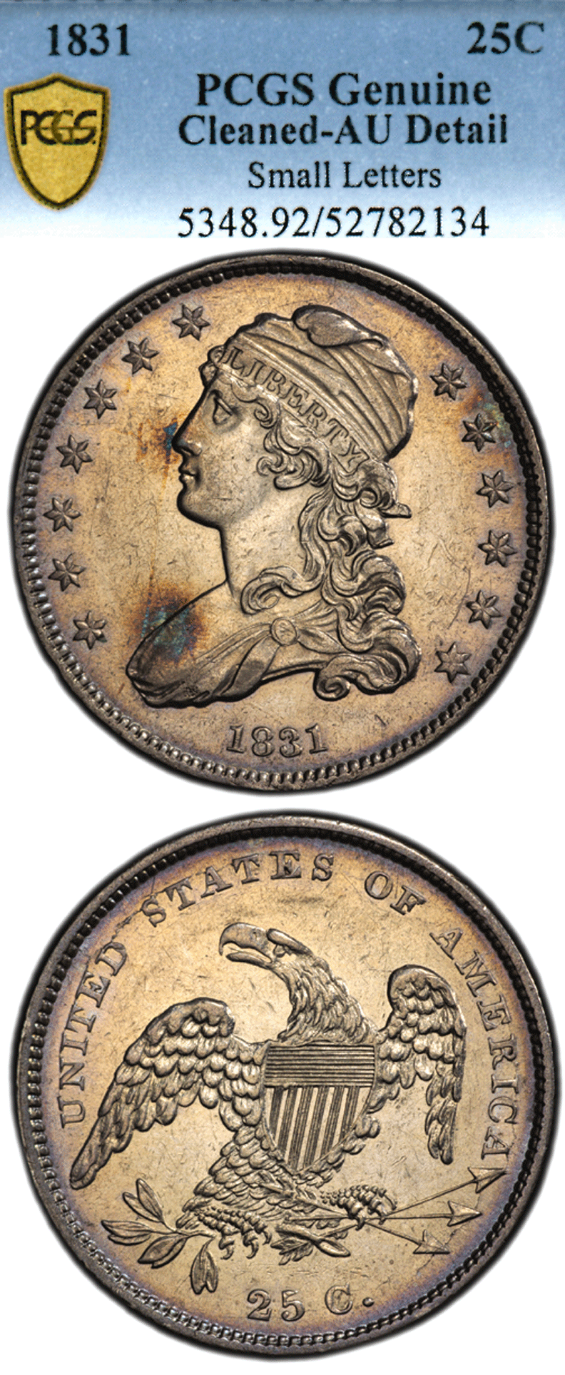 PCGS About Uncirculated Cleaned - High grade AU Small Letters variety with sharp strike. First Year Type Coin. Low mintage of only 398,000 for this short lived series.