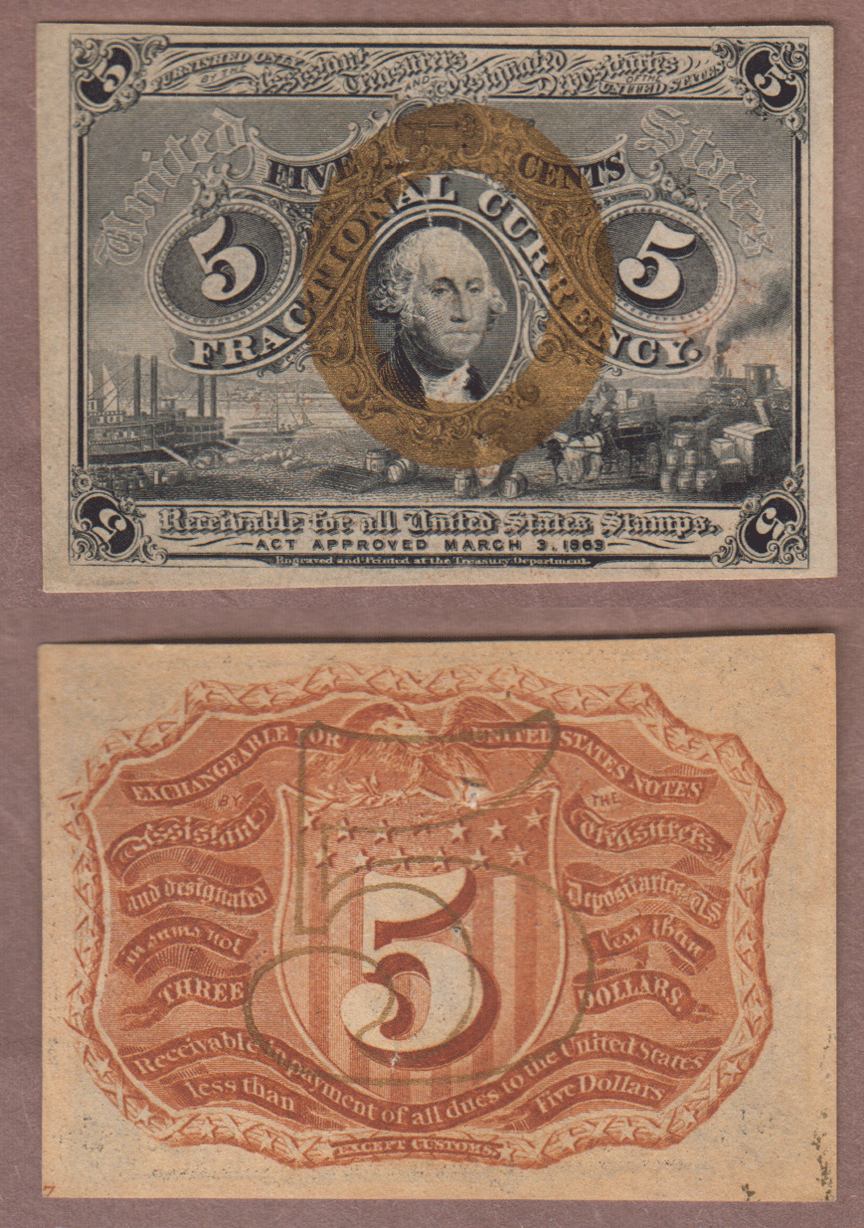 About Uncirculated Details- FR-1232 Second Issue - Issued 10-10-1863 thru 2-23-1867 - Has a few small pin holes . George Washington in Bronze oval frame.