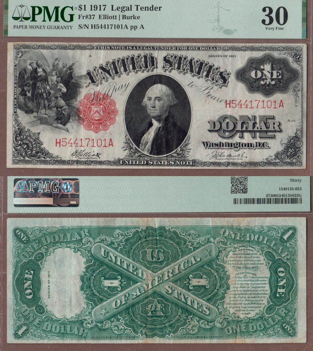 1917 $1.00 FR-37 PMG VF 30
