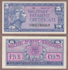 Series 641 .05 Cent Very Fine or Better - Used in Vietnam Issued 8-31-65 Withdrawn 10-21-68 - Front is purple and blue. Back is purple and blue. |