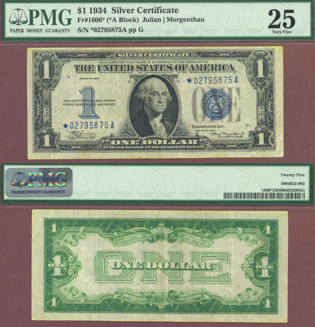 Item Number: SSC-147 PMG Very Fine 25 - FR-1606* Julian/Morgenthau - Attractive VF STAR NOTE with no stains, pinholes or other problems.$195.00