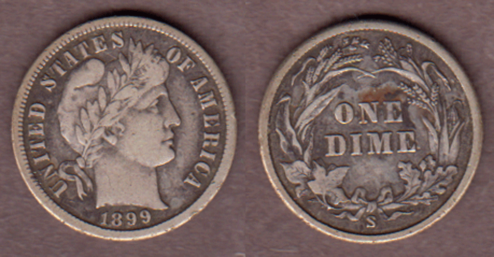 1899-S 10c Barber silver dime