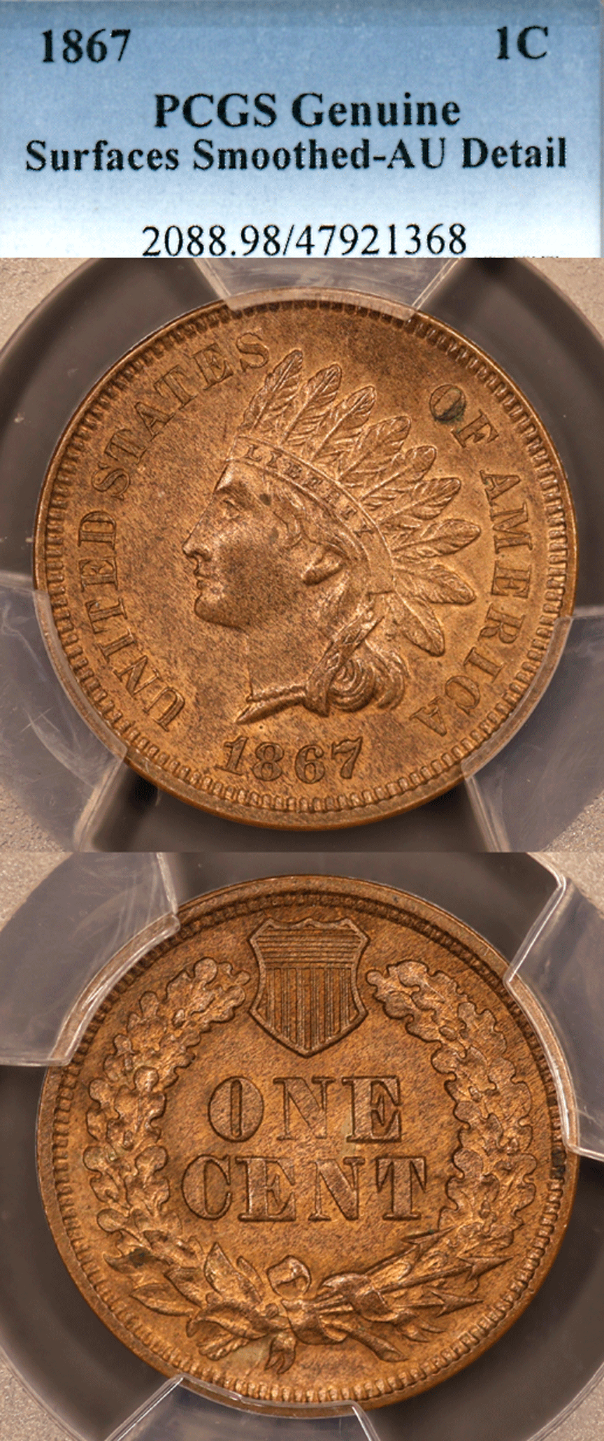 Item Number: IC-351 PCGS About Uncirculated Details Surfaces Smoothed - Well struck high grade AU better date. Mintage of 9,821,000$225.00