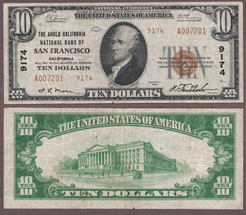 Item Number: SNBN-166 Very Fine - FR-1801-2 The Anglo California National Bank of San Francisco California - Charter 9174. Type 2 national.$150.00