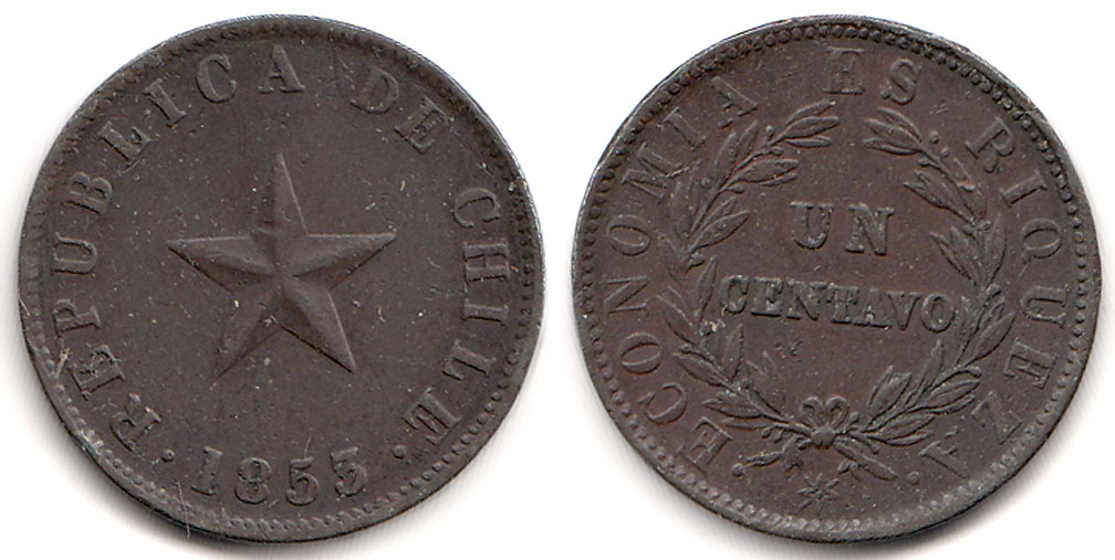 Item Number: CHILI-32 Very Fine - 1/2 Centavo KM-127 .Copper Approximately 30 MM - Sharp VF with original uncleaned surfaces.$25.00