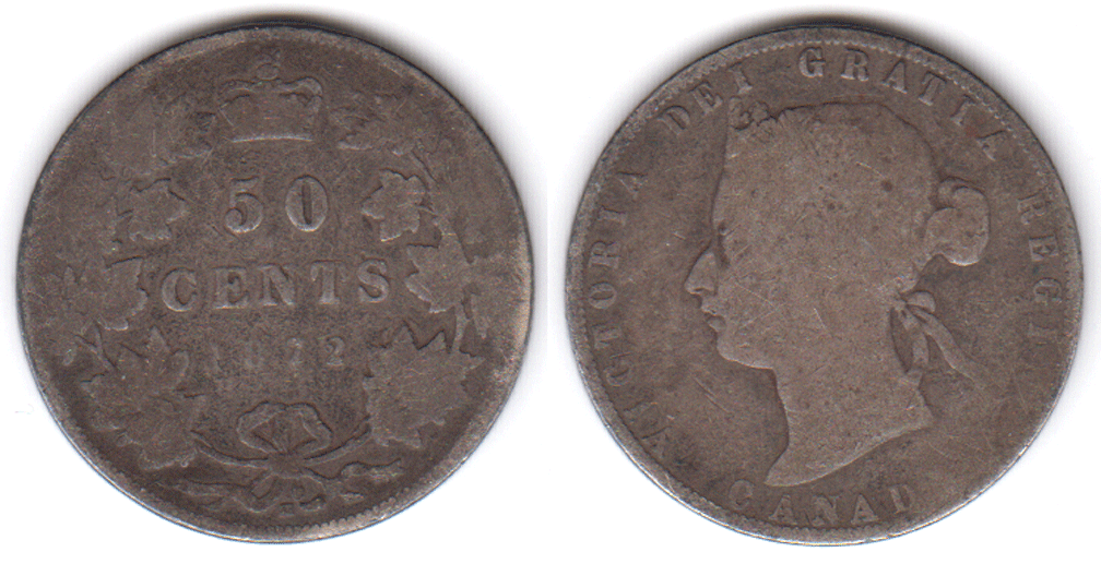 1872 H 50c Inverted "A" in Victoria Canada silver half dollar