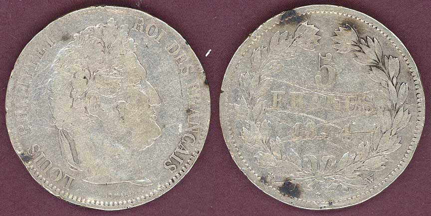 Item Number: F-51 Very Good+ 5 Francs #749.13 .900 Silver Lille Mint. Cleaned at one time with scratches on reverse. Large silver dollar size coin about 37 MM.$95.00