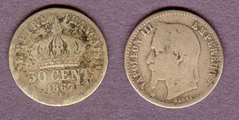 Fine - 50 Centimes #814.1 .835 Silver Paris Mint.