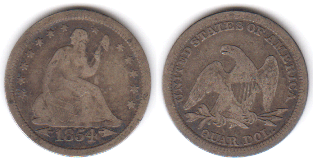 1854 25c Arrows US seated liberty silver quarter
