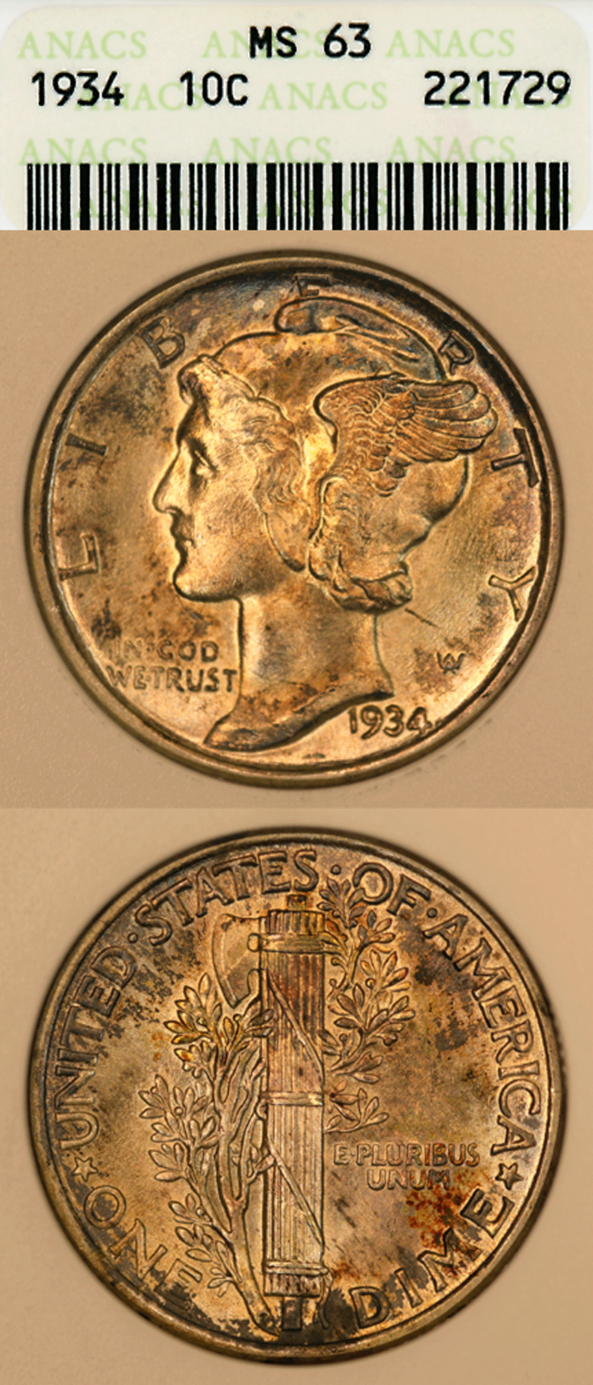 Item Number: D-636 ANACS Mint State 63 - Nice luster under light toning. In earlier small size ANACS holder. Mintage of 24,080,000$40.00