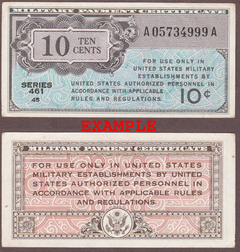 Item Number: MPC-157E About Uncirculated or Better - Issued 9/46 to 3/10/47 - High grade with light handling. Green/blue & light brown with black printing on face, Light Red/brown back.$30.00