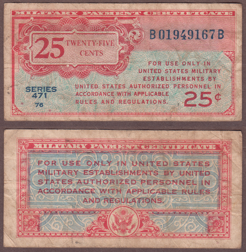 Item Number: MPC-166 Fine - Issued 3/10/47 to 3/22/48 Aqua&Red face with blue printing, Blue/Red back.$25.00
