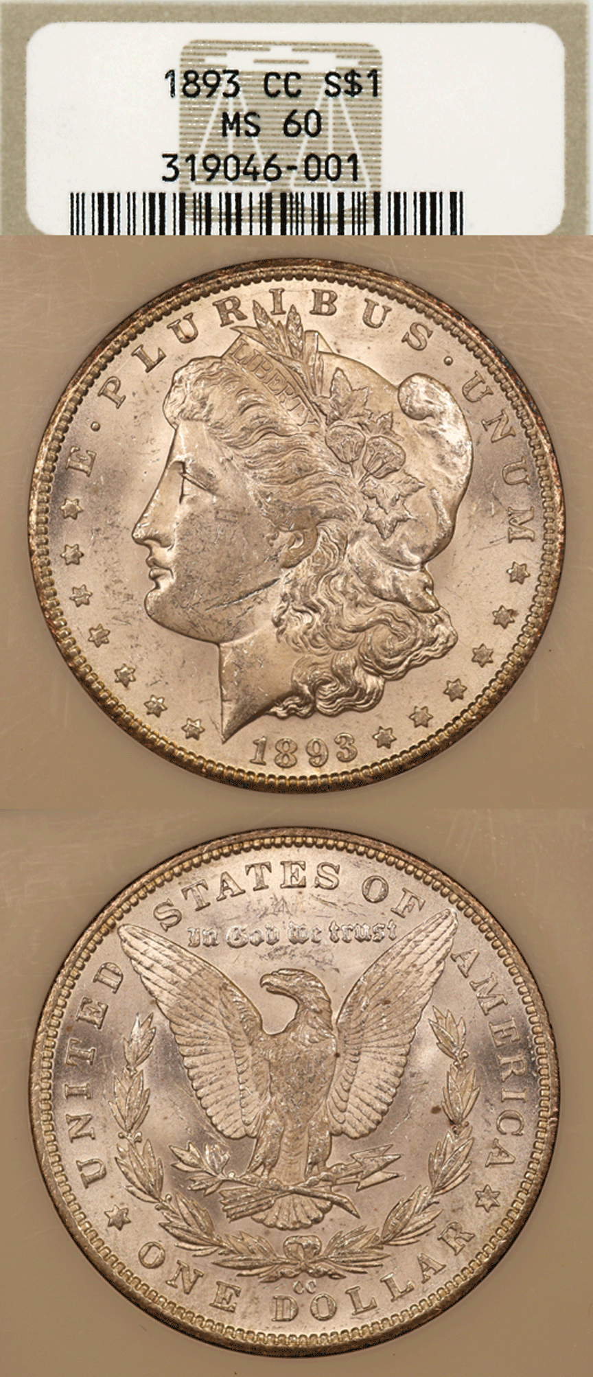 Item Number: MD-1701 NGC Mint State 60 - Near White surfaces with flashy mint luster. Last Year of issue from the Carson City Mint. Low mintage of 677,000$5,950.00
