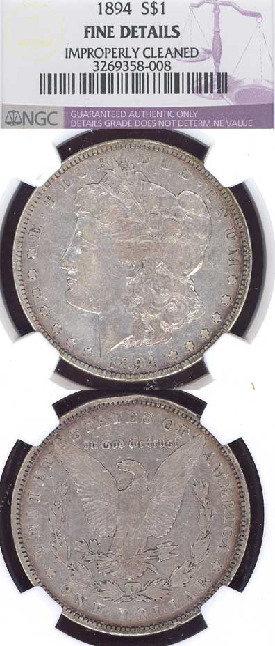 Item Number: MD-1097 NGC Fine Details -Improperly Cleaned- Very strong details for the grade. Cleaned long ago now re-toning. Second Lowest Mintage of the Morgan Dollar series with only 110,972 made. KEY DATE$900.00