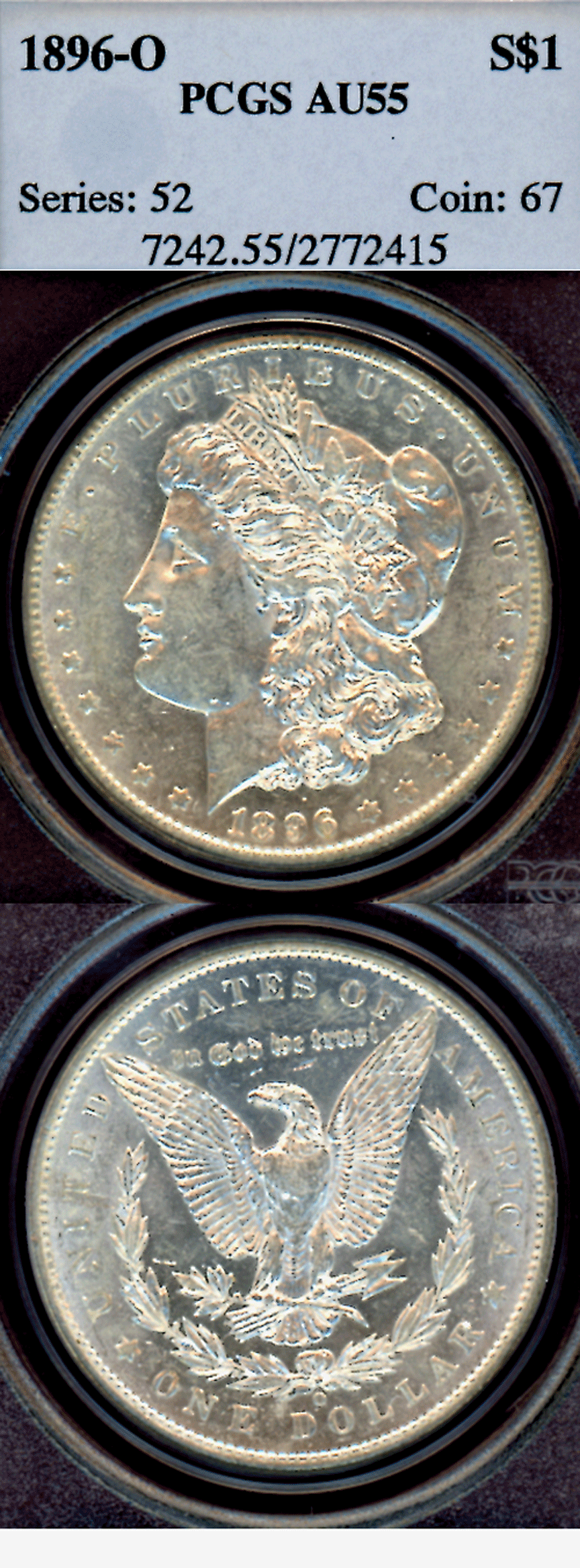 1896-O $ US Morgan silver dollar PCGS AU 55
