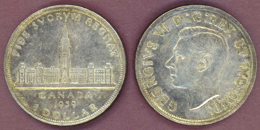Very Fine or better - KM#38 .800 Fine Silver. One year Commemorative silver dollar for Royal Visit with Tower at center of building.