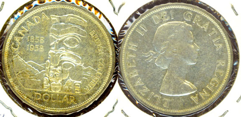 Item Number: Can-31 Almost Uncirculated or Better - #55 .800 Fine Silver - One hundred year Commemorative Silver Dollar for British Columbia with Totem Pole.$85.00