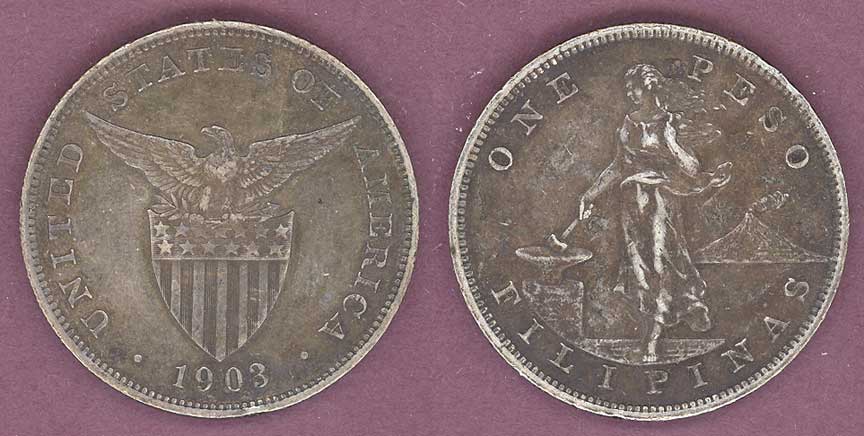 Item Number: PH-46 Very Fine+ 1 Peso #168 Silver - First year of this popular large size Peso. This type was made for only 4 years 1903-06.$110.00