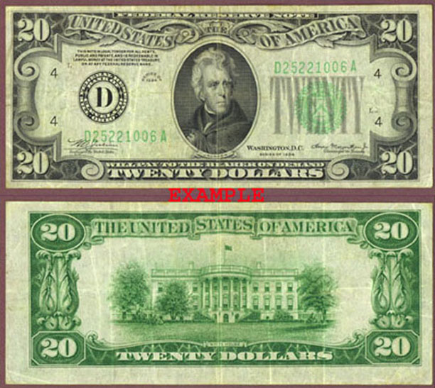 Very Good or Better - Receive a 1934 $20.00 Federal Reserve Note in Very Good or better condition. (Our choice on series).