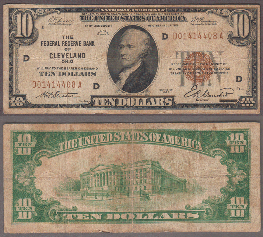 1929 $10 FR-1860-D Cleveland
