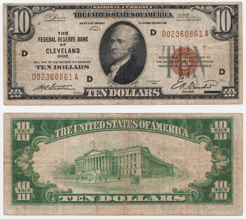 1929 $10 FR-1860-D Cleveland