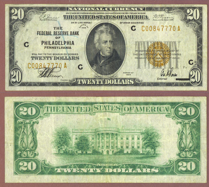 Item Number: SFRBN-59 Very Fine - FR-1870-C - From the Philadelphia District."C". Light blue pencil mark on front of note. Only 1,008,000 notes made. $50.00