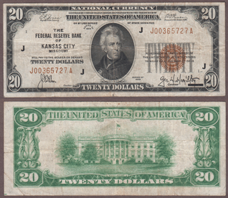 Item Number: SFRBN-113 Very Fine - FR-1870-J - From the Kansas City District."J". Original no problem note. Only 612,000 notes made.$65.00