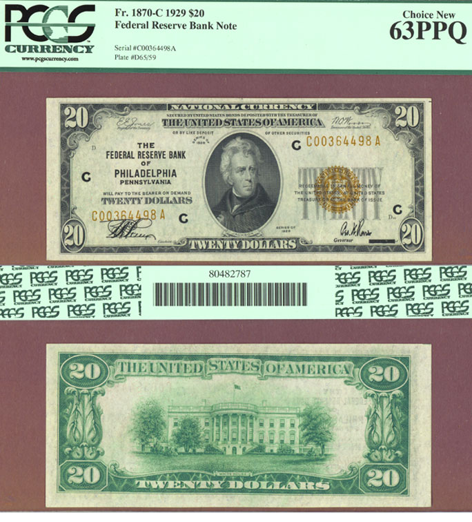 Item Number: SFRBN-71 PCGS Choice New 63 PPQ - FR-1870-C Bright fresh Uncirculated note from the Philadelphia district with "Premium Paper Quality". $245.00
