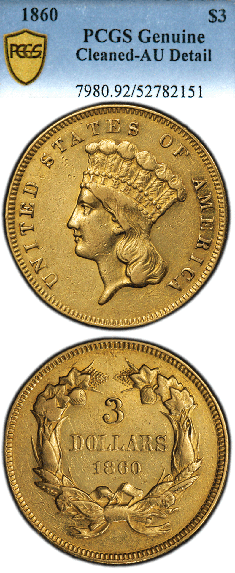 Item Number: USG-380 PCGS Almost Uncirculated Details - Cleaned - Light wear with mint luster in protected areas. Very Low mintage of 7,036. NO GOLD COIN SALES USING CREDIT CARDS. PAYMENT MUST BE MADE BY BANK WIRE 361-980-3997 FOR DETAILS.$2,100.00