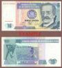 1987 10 Intis Choice Uncirculated - 10 Intis #129 Front is Black, dark blue and purple on multi-colored underprint with portrait of Ricardo Palma at right. Indian farmers digging and picking cotton. |